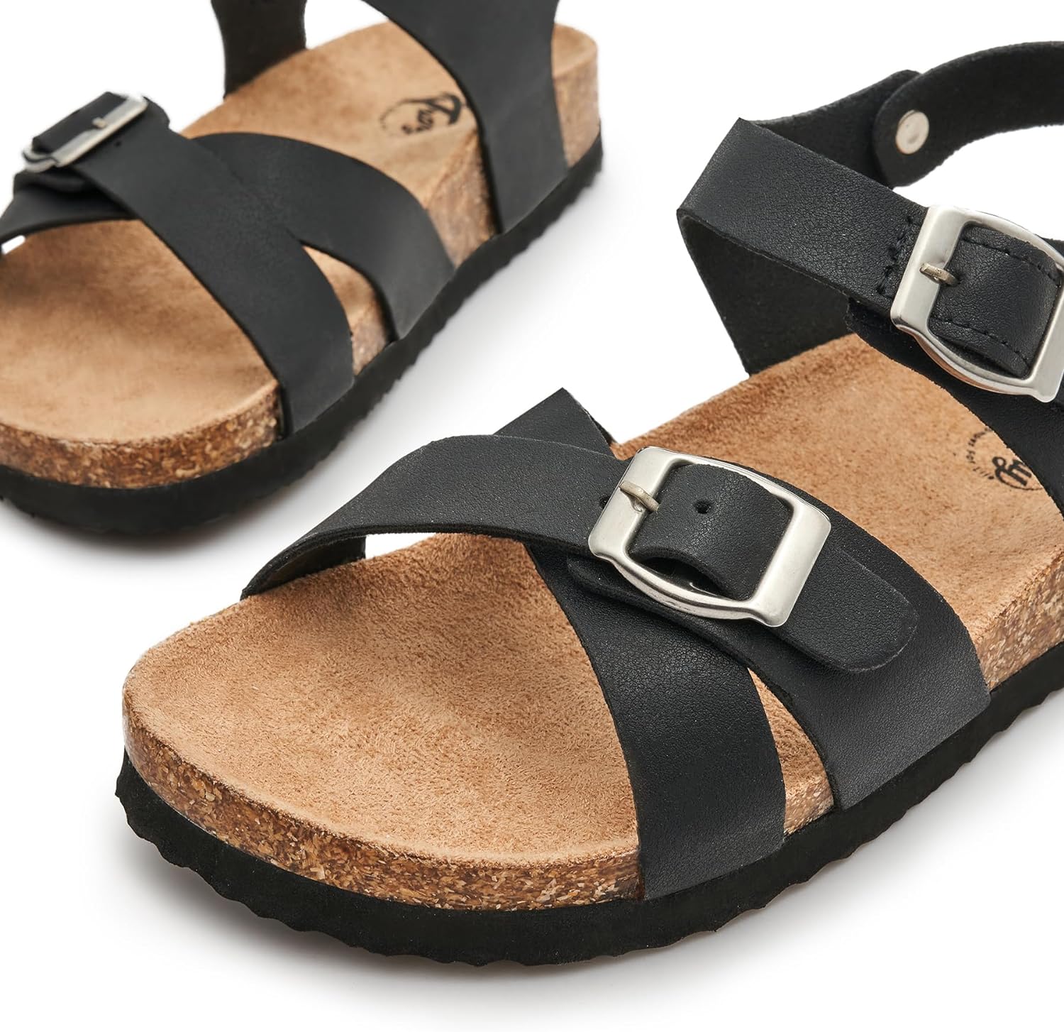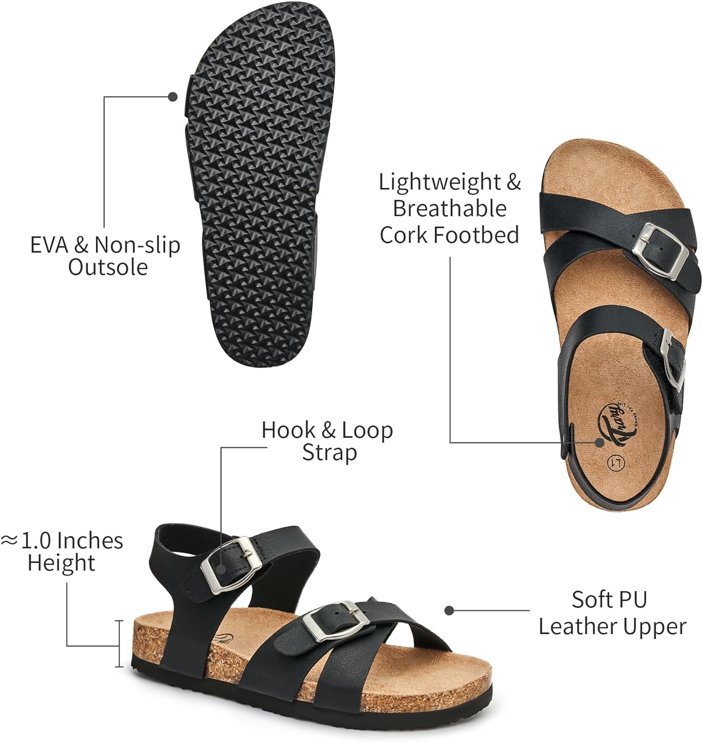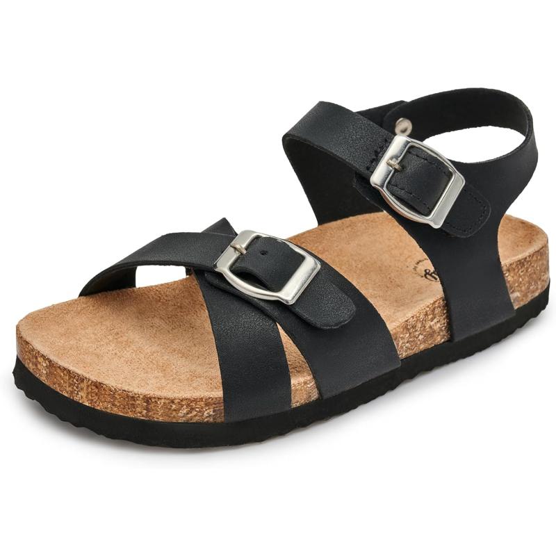Trary Girls Sandals Adjustable Buckle Causal Sandals for Girls Open Toes Summer Shoes Cork Footbed Sandals for Little Big Kids(Black)