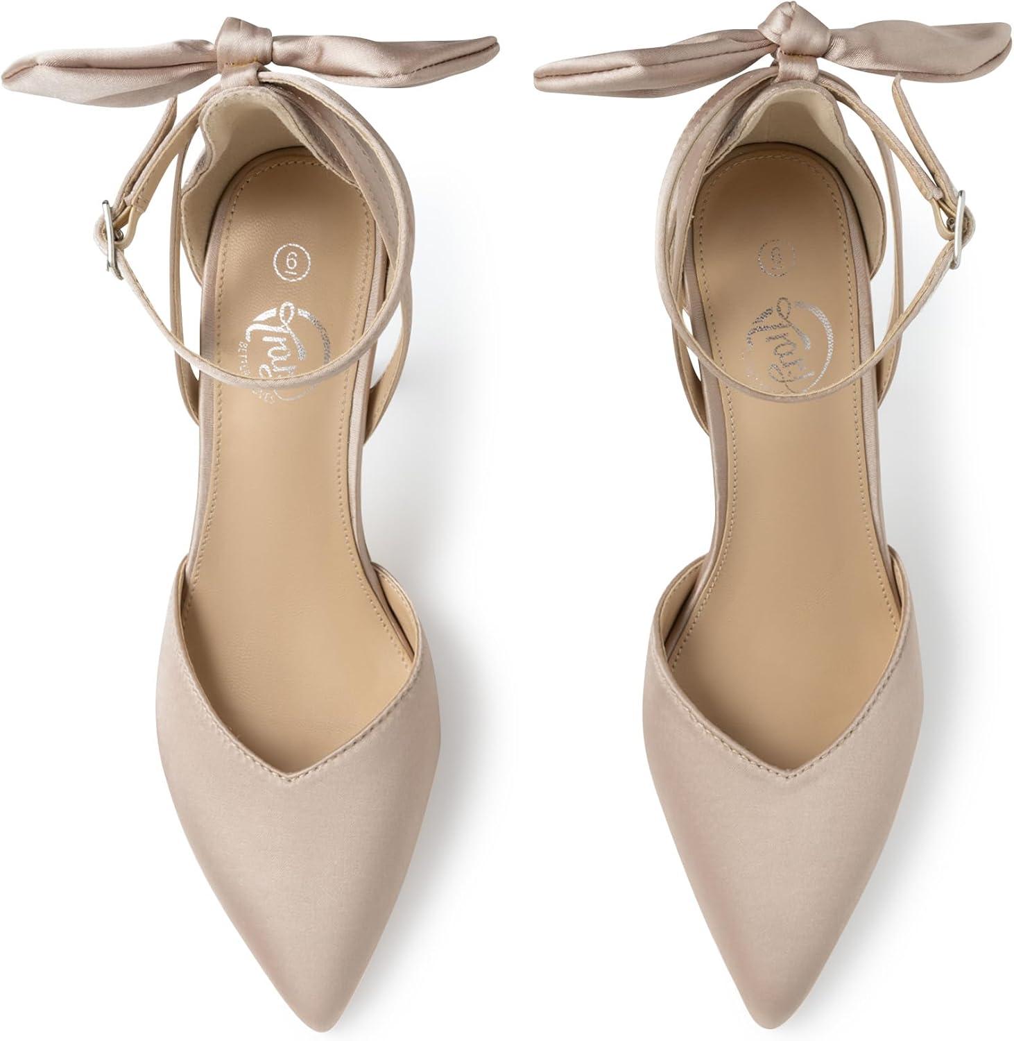 Trary Heels for Women Closed Pointed Toe Heels Women’s Pumps Stiletto High Shoes with Bow Knot Comfortable Ankle Strap Office Party Wedding Dress Shoes 3.74″ Heel(Nude)