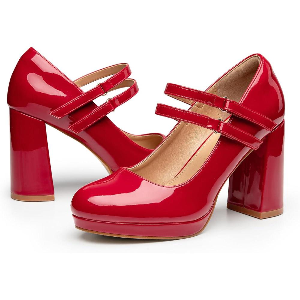 Trary Mary Jane Shoes Women Heels Platform Chunky Block High Heels with Double Strap Women’s Pumps Comfortable Dress Pumps for Party Wedding Office Round Toe Heel Shoes(Patentred)