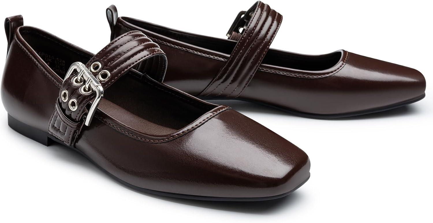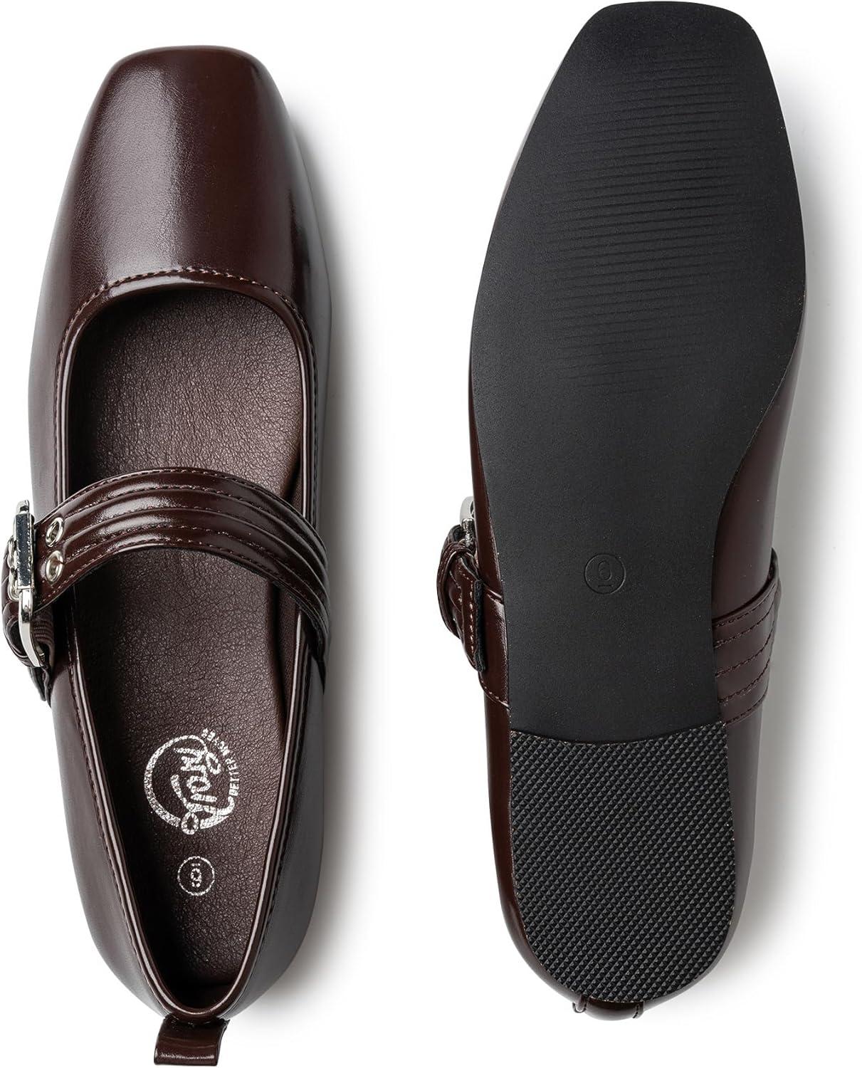 Trary Mary Jane Shoes Women Woven Flats for Women Dressy Ballet Flats Squared Toe Mary Jane Flats Shoes(B-pu Coffee)