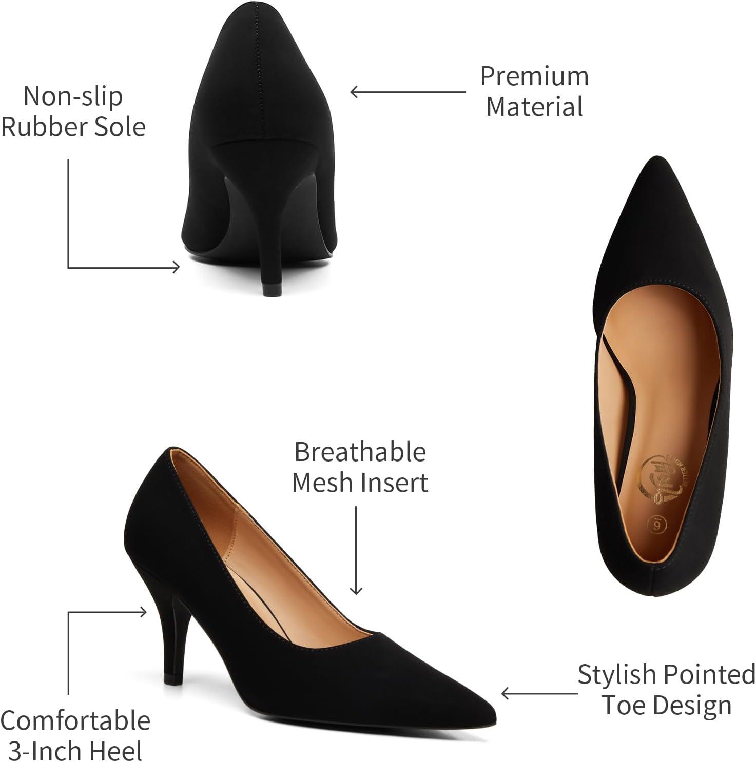 Trary Women’s High Heel Dress Pump Pointed Toe Shoe Classic Office Special Dressy Casua Wedding Pump Shoes(A-nubuck Black)