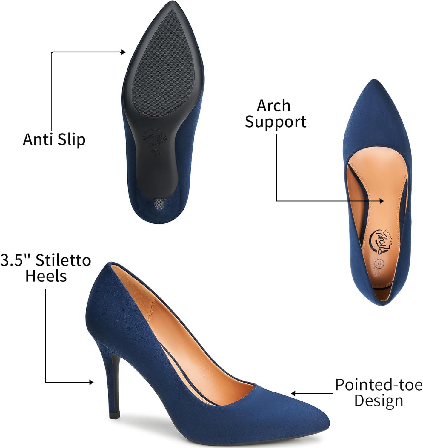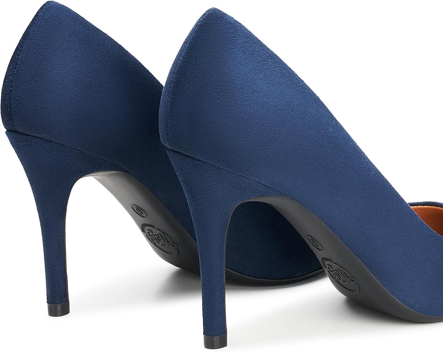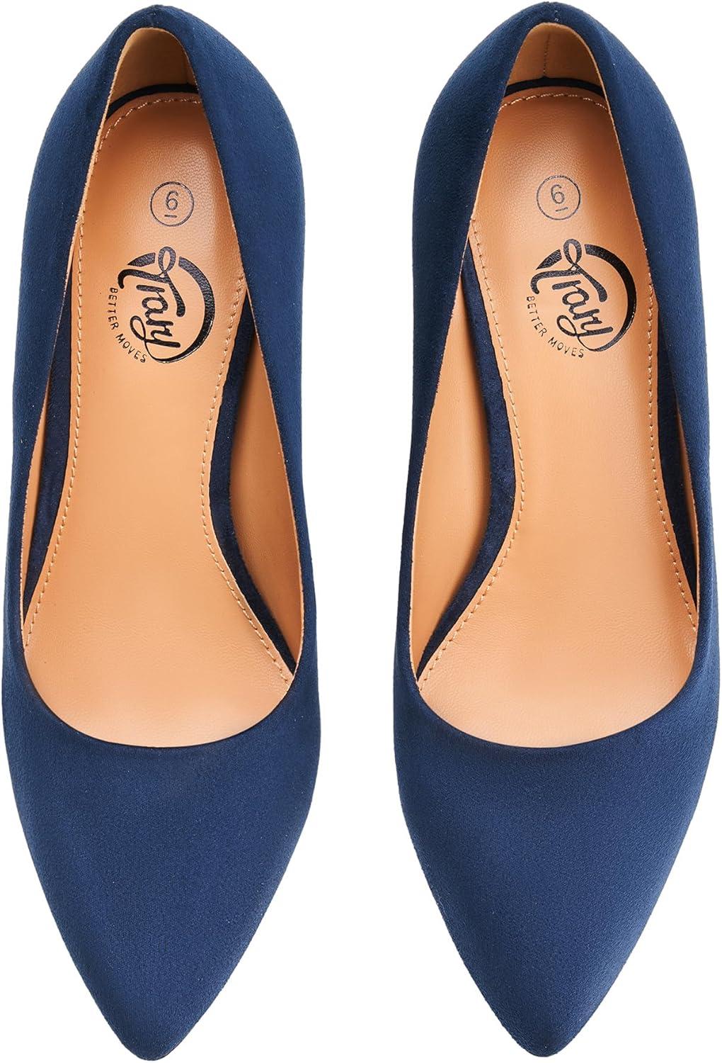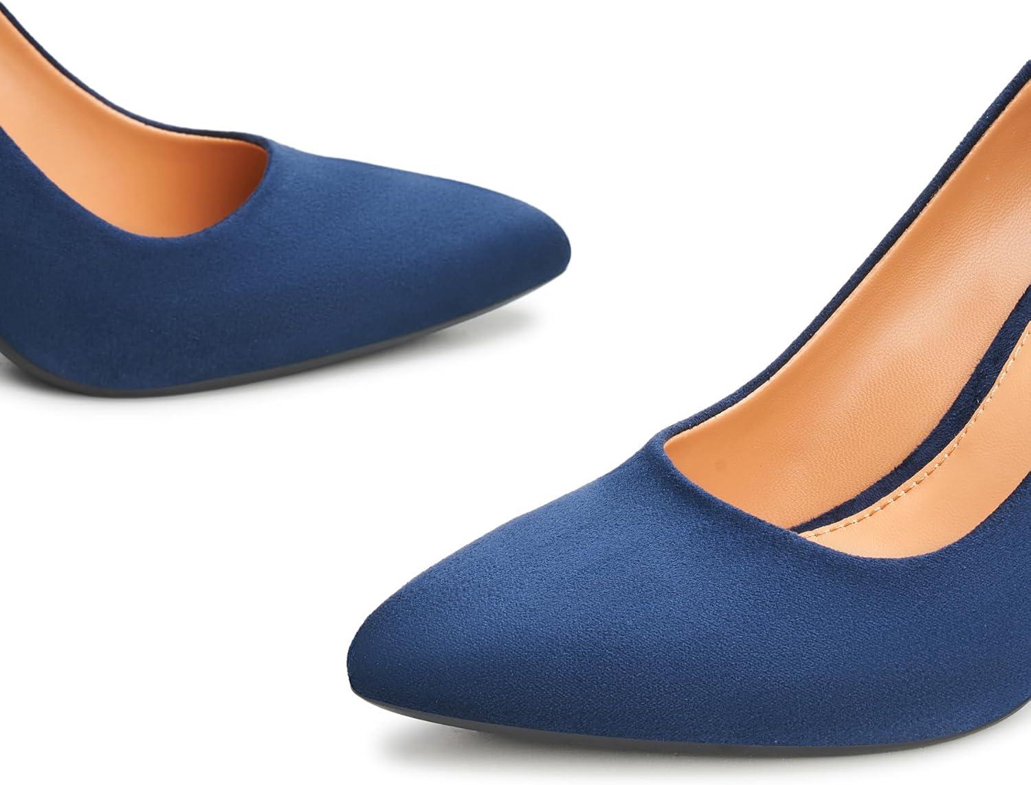 Trary Women’s High Heel Dress Pump Pointed Toe Shoe Classic Office Special Dressy Casua Wedding Pump Shoes(Navy Blue)