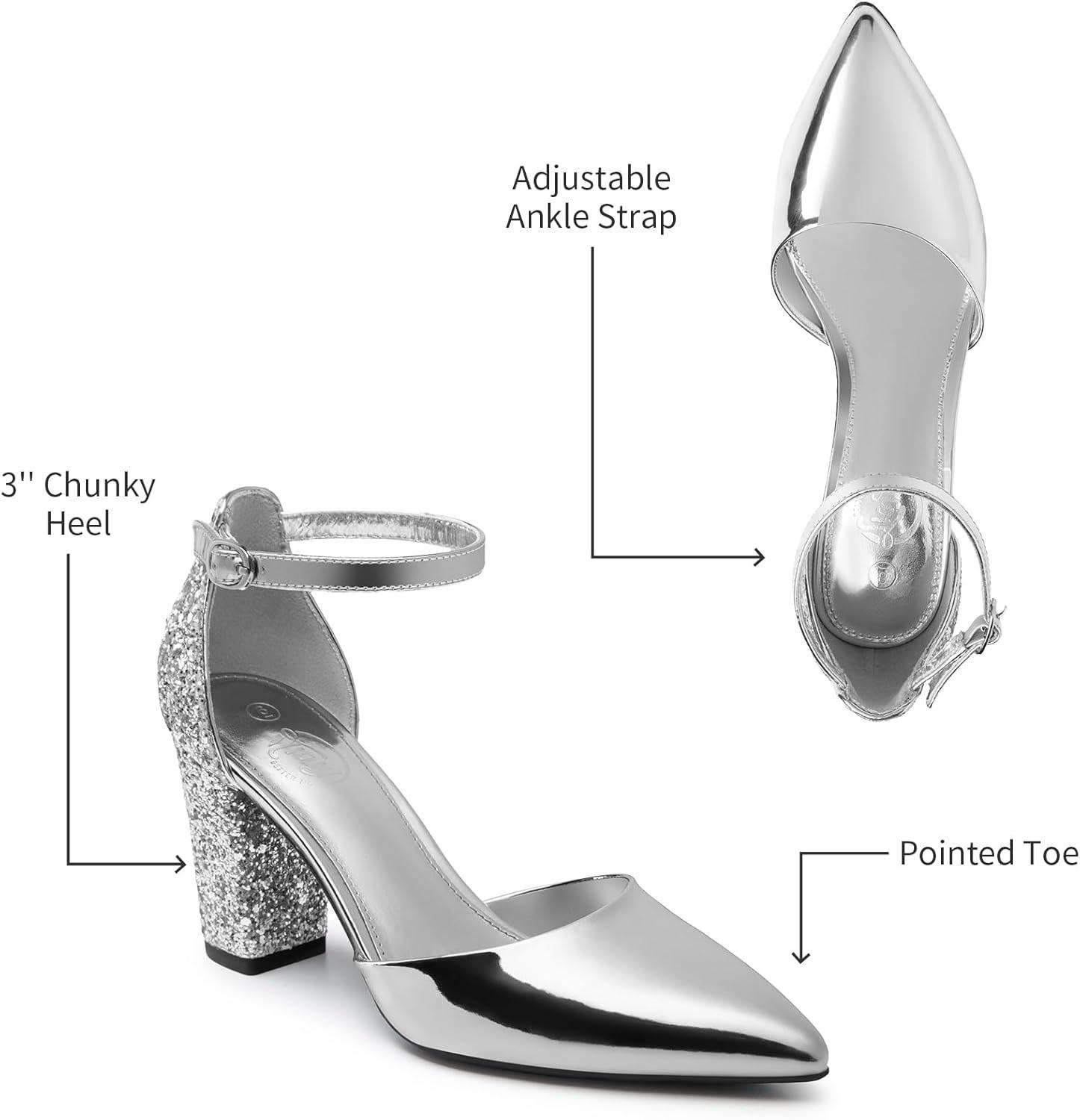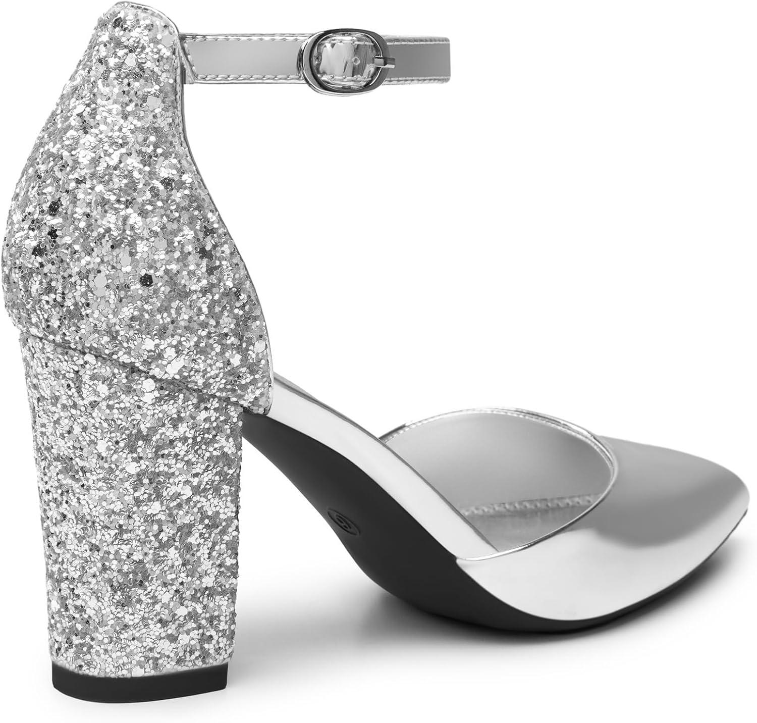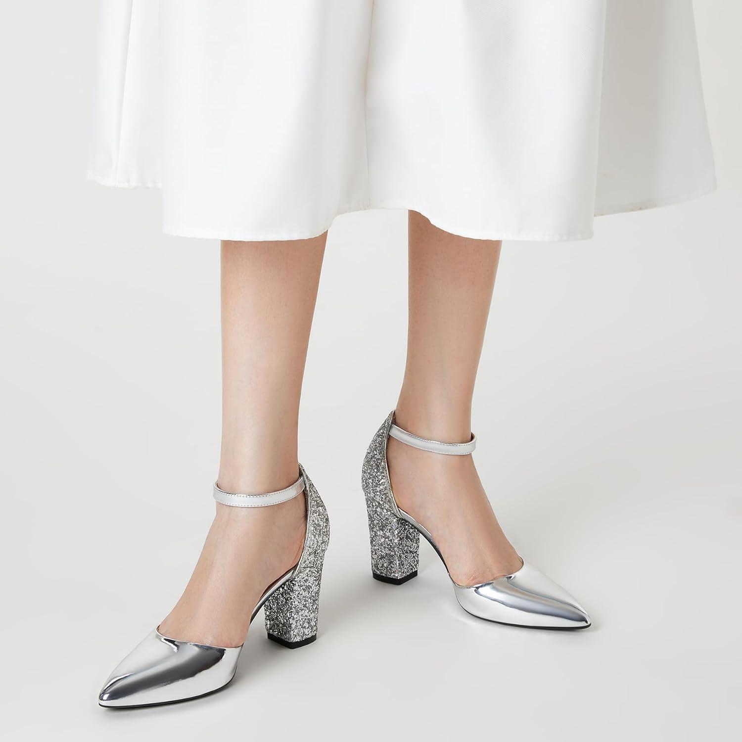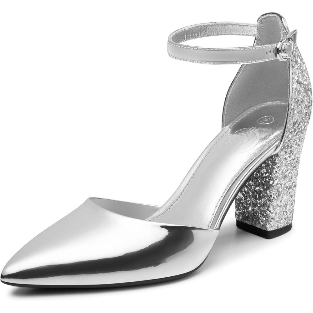 Trary Women’s Pumps Pointed Toe High Block Chunky Heels Shoes,Closed Toe Heels Dress Wedding Party Office Causal Pumps(Sliver)